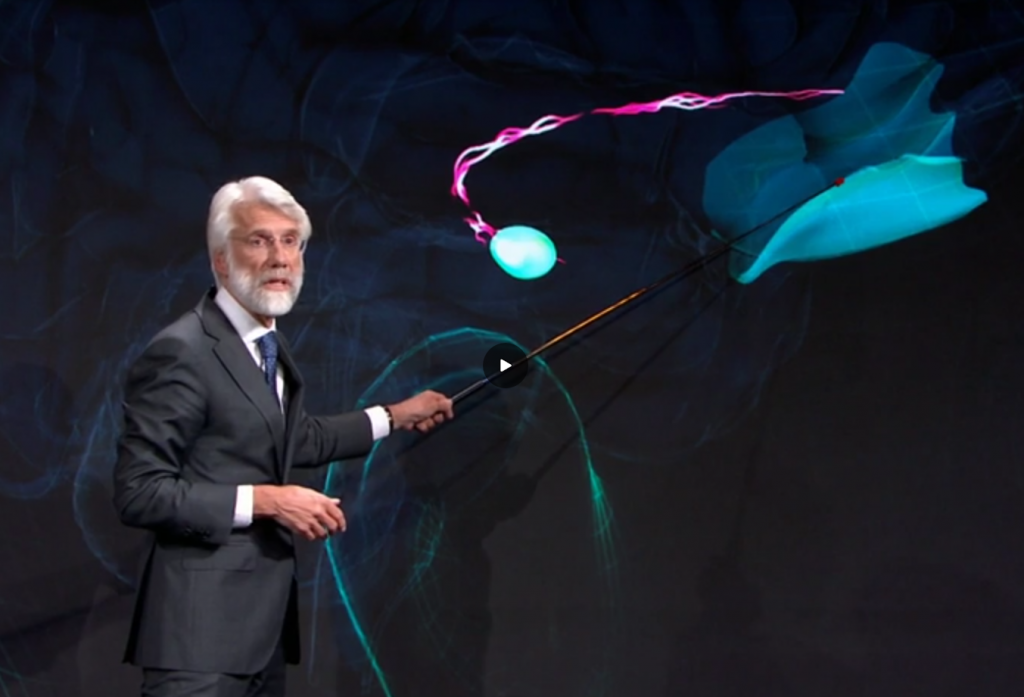 In het filmpje legt Scherder eerst uit wat de verschillende gebieden van de hersenen doen van achteren naar voren: al onze zintuiglijke informatie komt binnen aan de achterkant (dat wat we zien en horen). In het midden van de hersenen (zeg maar boven de oren) zit vervolgens het emotiecentrum. En aan de voorkant de ‘frontale lob’ (de prefrontale cortex), die zorgt voor ons gedrag. De input wordt dus aan de achterkant verwerkt, terwijl het gedrag aan de voorkant wordt gestuurd.